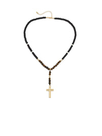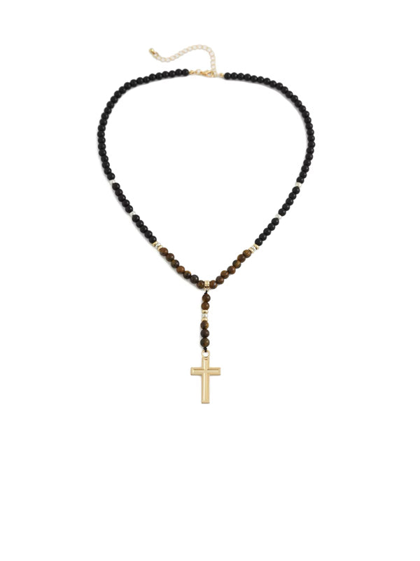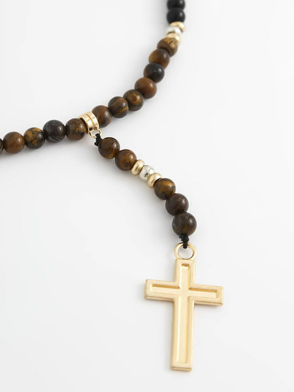 Stone Beads Necklace with Tassel Cross Pendant