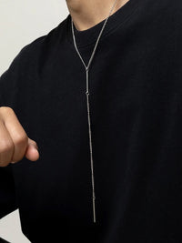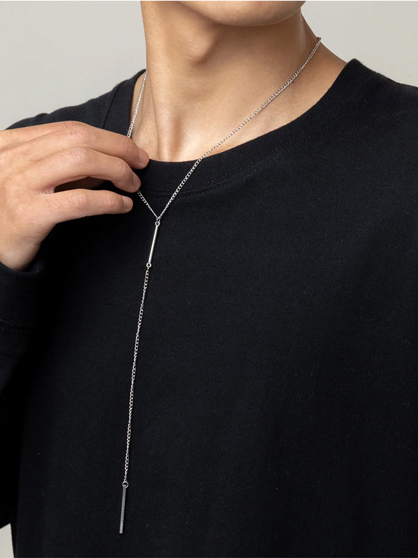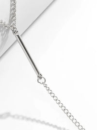 Tassel Chain with Rectangle Pendant Necklace in Silver Color