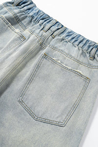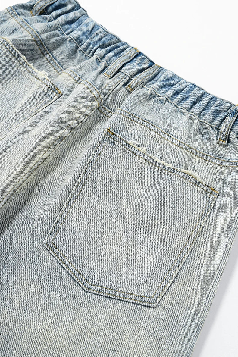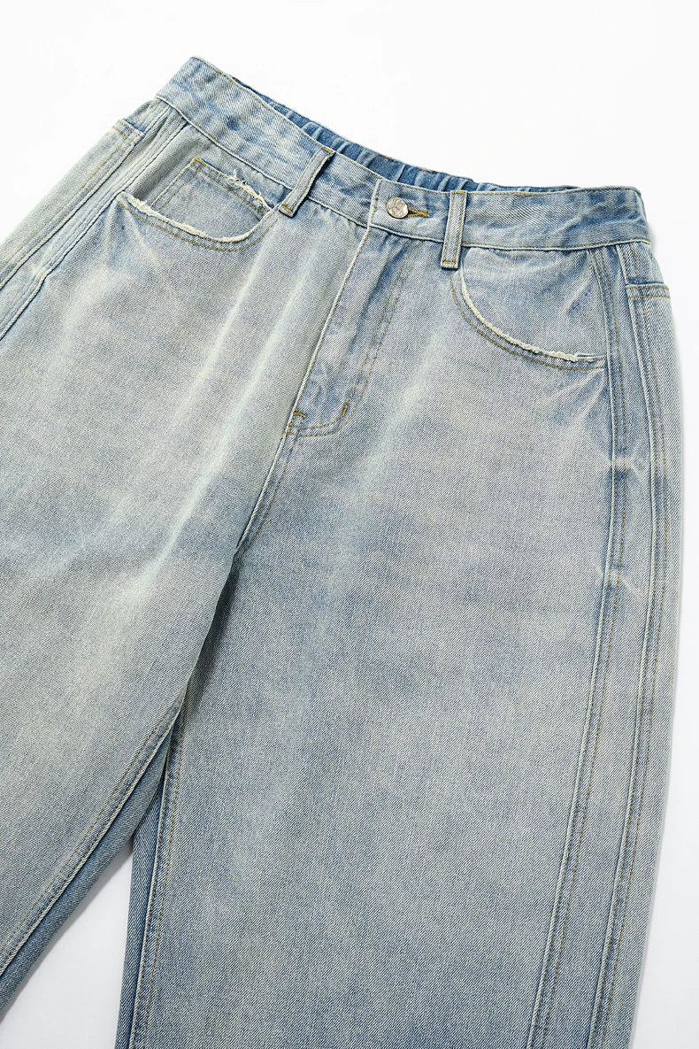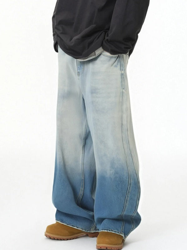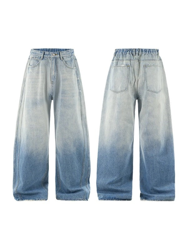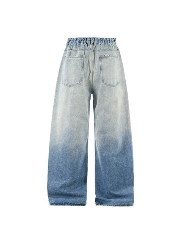 The pants feature a unique gradient design with a natural transition The toe area is specially designed with a worn design to add a rebellious street vibe. The back waist is designed with elastic bands, while the front waist features regular buttons combined with loops. The classic pocket layout of jeans is both practical and aesthetically pleasing The color has high color fastness and is not easy to fade, maintaining the beauty of gradient colors for a long time. The cotton fabric is skin-friendly, breathable, won't make you sweat in summer and won't burn your skin in autumn.
