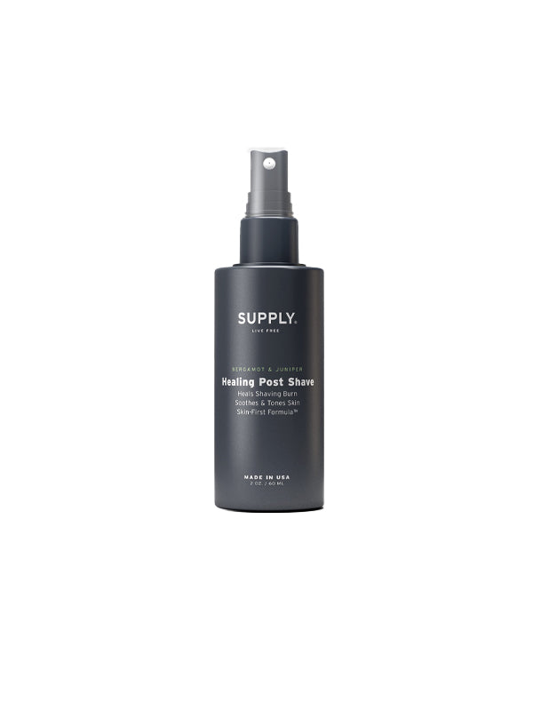 Every time you shave, tiny invisible cuts appear on the surface of your skin. Supply Co's alcohol-free Healing Post Shave soothes inflammation, enhances cell repair, and keeps your skin moisturized throughout the day.