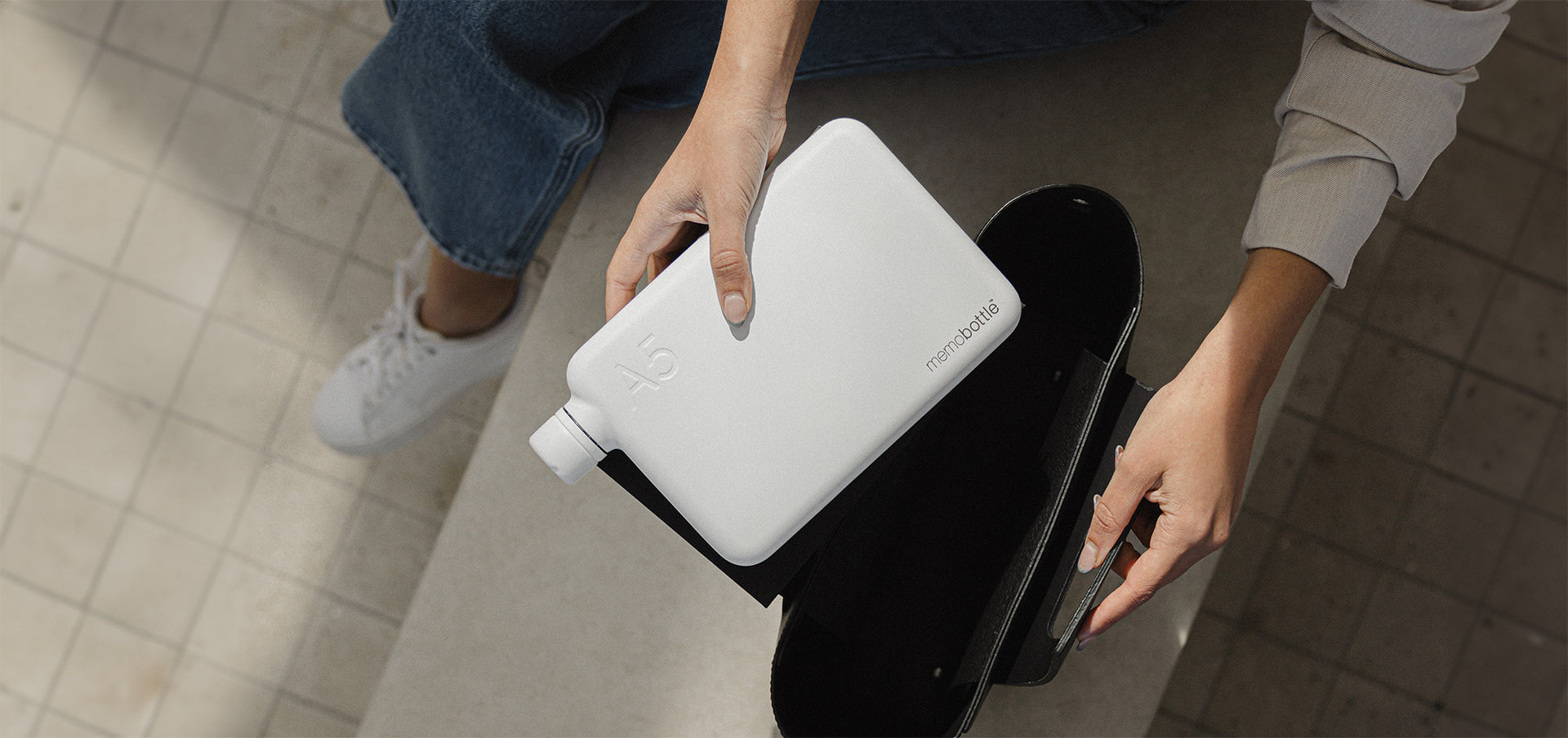 The memobottle's paper-inspired design allows it to sit flat against laptops, books and everything else you carry, making the most of the room in your bag.